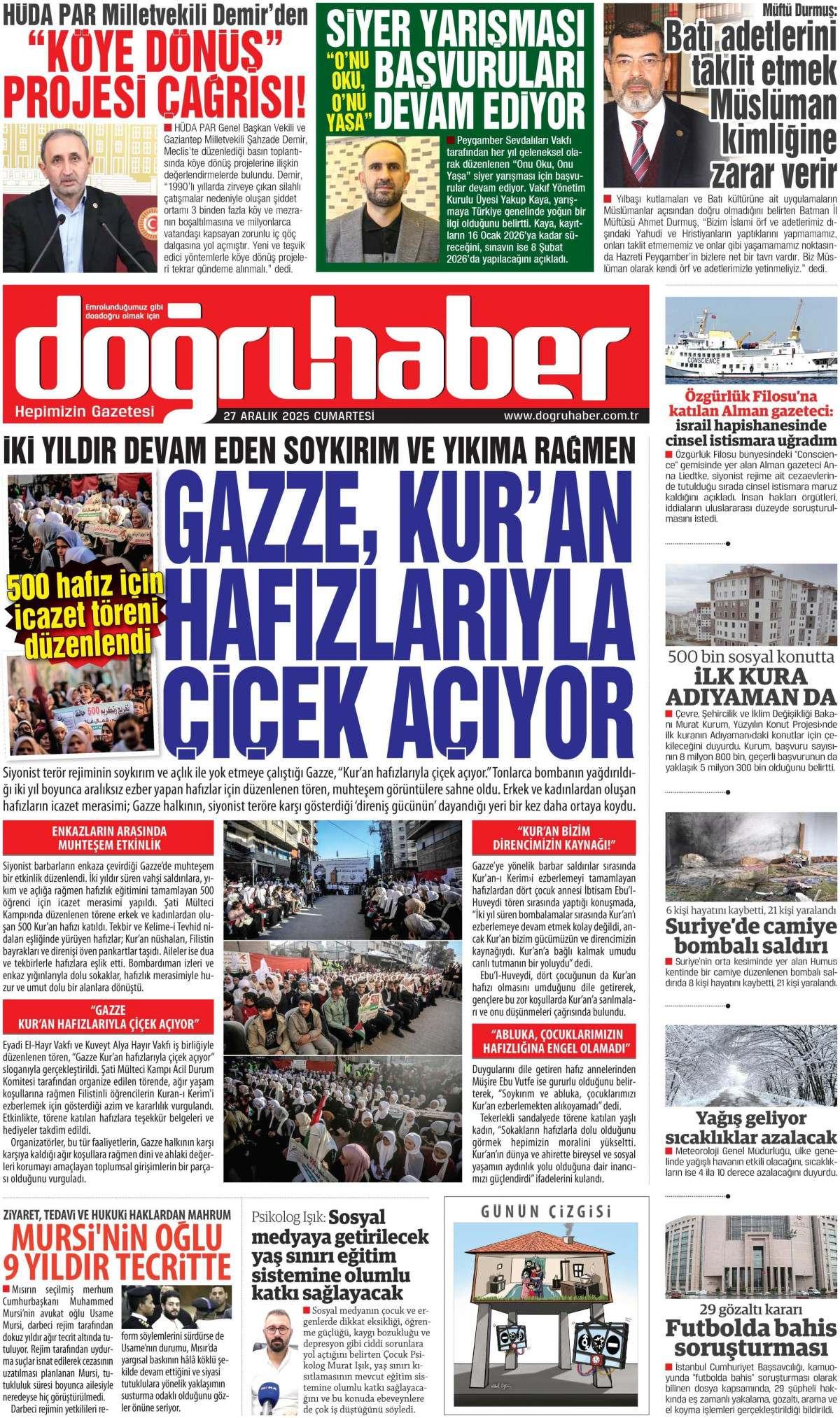 Doğru Haber Gazetesi 27 Aralık 2025 Günü Gazete Manşetleri