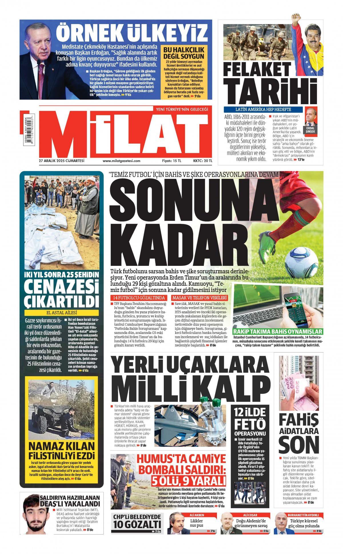 Milat Gazetesi 27 Aralık 2025 Günü Gazete Manşetleri