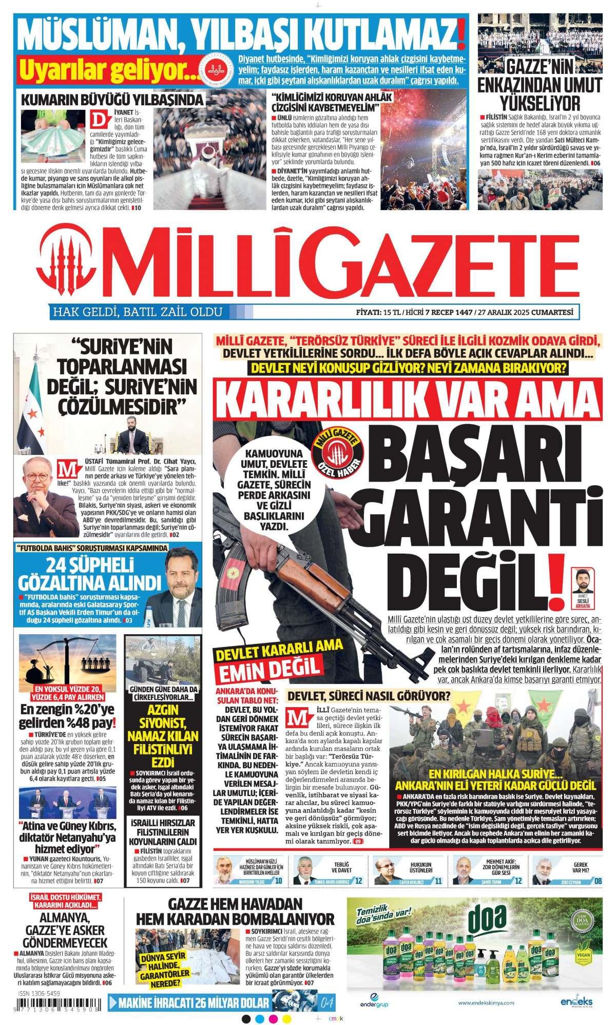 Milli Gazetesi 27 Aralık 2025 Günü Gazete Manşetleri